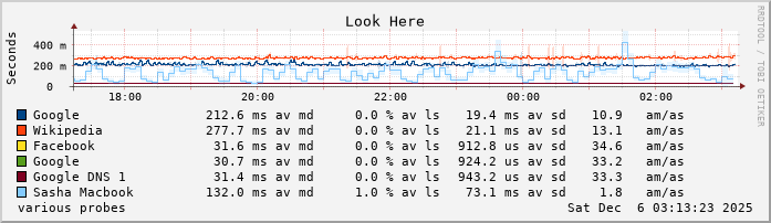 Welcome to the SmokePing website of WORKS Company. Here you will learn all about the latency of our network.